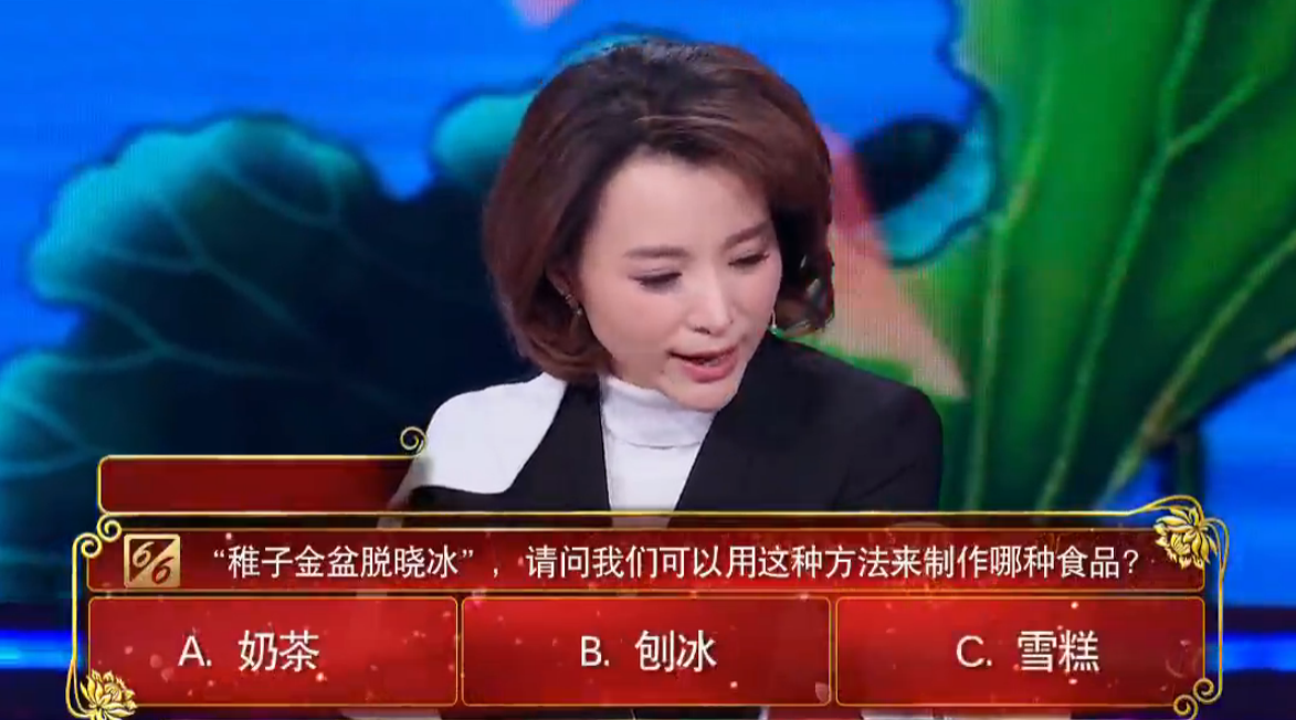 說實話,看到這道題我都是懵的,節目播出后也有觀眾留言:命題組老師太調皮了。但大家別覺得這樣的題目是出來搞笑的,其實它出得很高明。能答對這道題,才能真正理解“稚子弄冰”中“弄冰”到底是什么意思。
