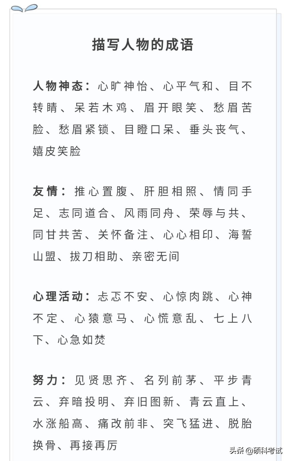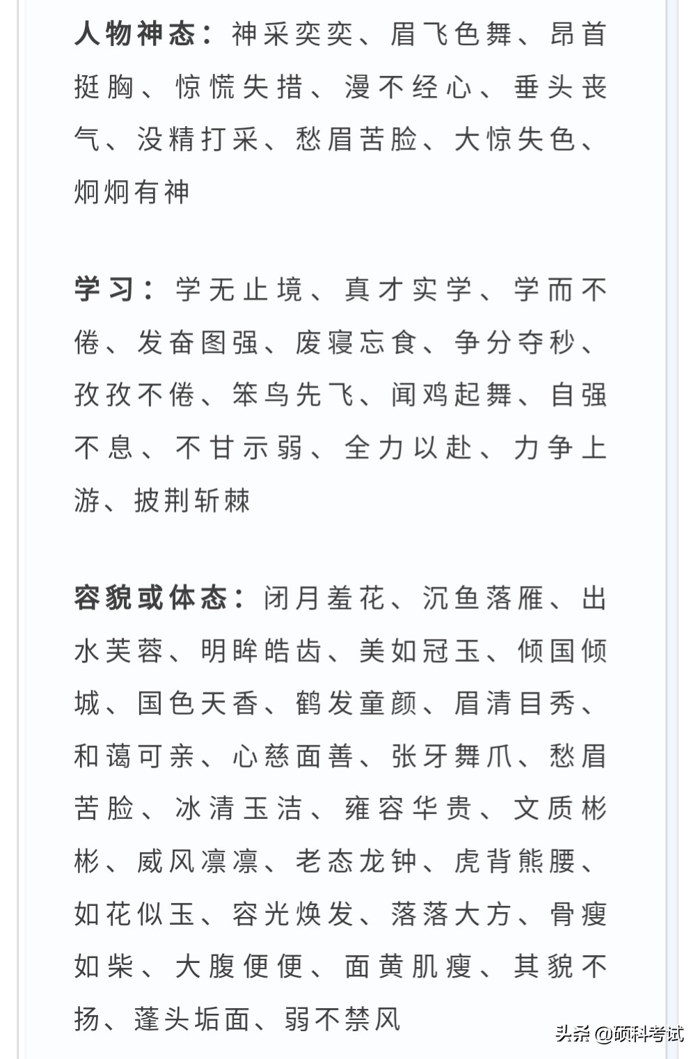 導讀小學生作文寫得差,很多時候是因為缺乏詞匯量積累,寫出來的文章干巴巴的,缺少文采,作文分數自然就不會高了。老師和家長要幫助孩子寫好作文,首先要讓孩子在平時做好詞語儲備。本文總結了小學語文作文中描寫人物、