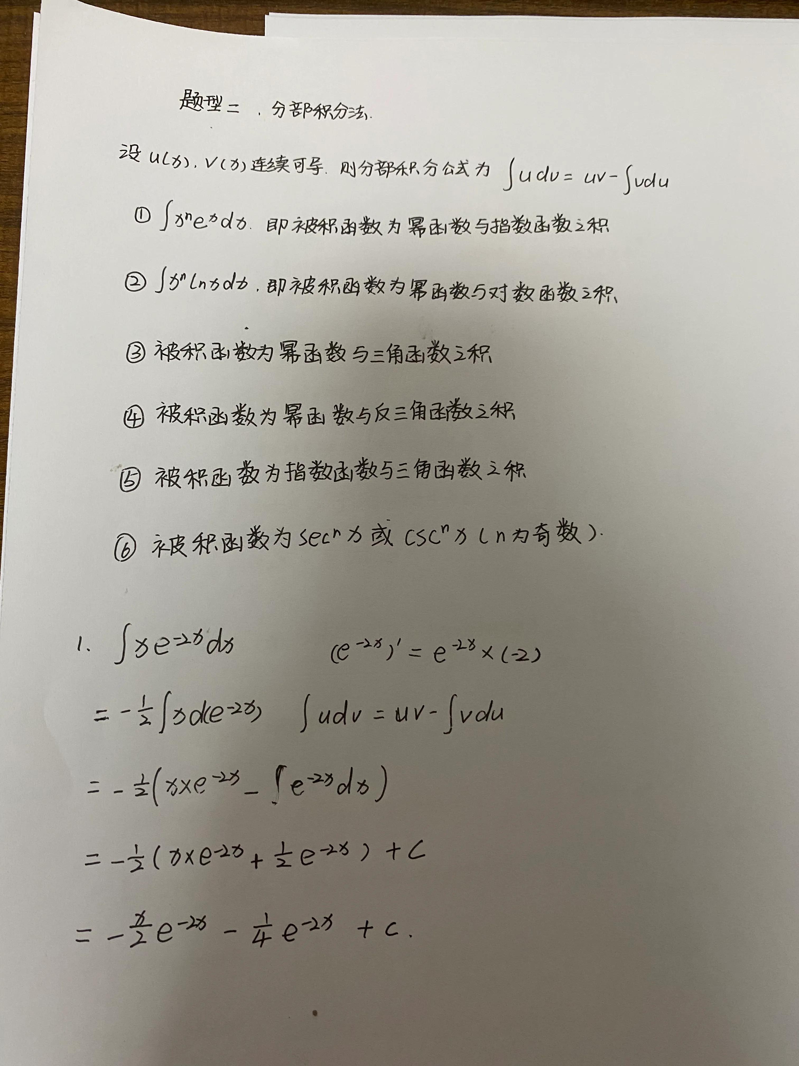導讀不定積分重點題型-分部積分法分布積分法適用的六種形式1.被積函數為冪函數與指數函數之積2.被積函數為冪函數與對數函數之積3.被積函數與冪函數與三角函數之積4.被積函數為冪函數與反三角函數之積5.被積函