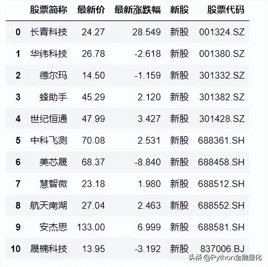 df[[&39;股票簡稱&39;,&39;股票代碼&39;,&39;新股上市日期&39;,&39;最新價&39;,&39;最新漲跌幅&39;,&39;所屬同花順行業&39;,&39;公開發行市值&39;,&39;所屬概念數量&39;]]