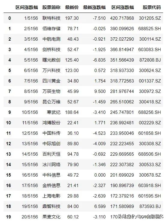 qs.wencai(&39;今年以來漲幅最大的前20名,非ST&39;)qs.wencai(&39;今年以來跌幅最大的前20名,非ST&39;)