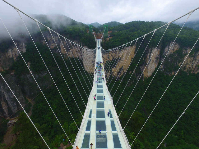 乘車赴慈利,游大峽谷景區和云天渡玻璃橋,住武陵源。