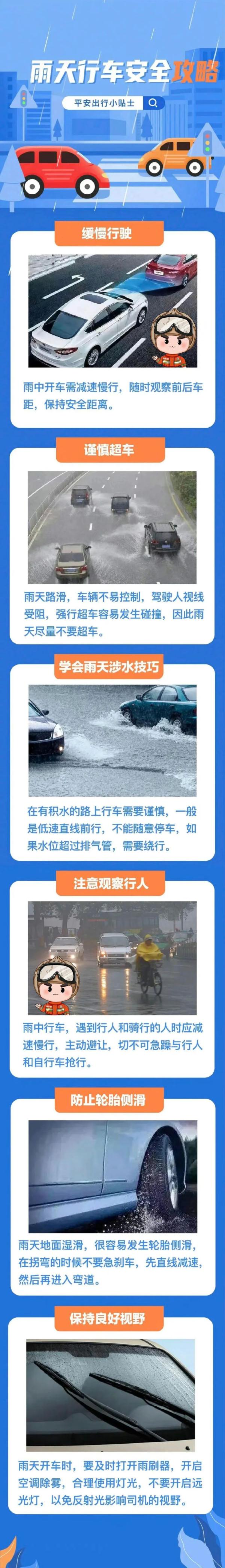 進入汛期,降雨天氣時有發生。雨天安全事故易發,提前做好防范是關鍵。雨天行車有哪些注意事項?戳圖了解↓↓