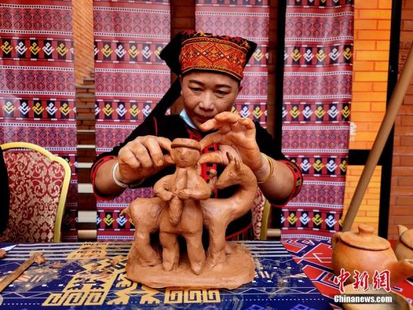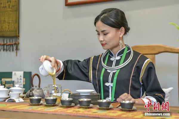 圖為黎族姑娘展示茶道。駱云飛 攝