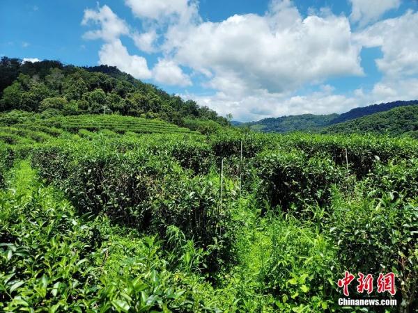 在五指山水滿鄉,一座座茶園鑲嵌在熱帶雨林之中。圖為水滿鄉的椰仙觀光茶園。王曉斌 攝