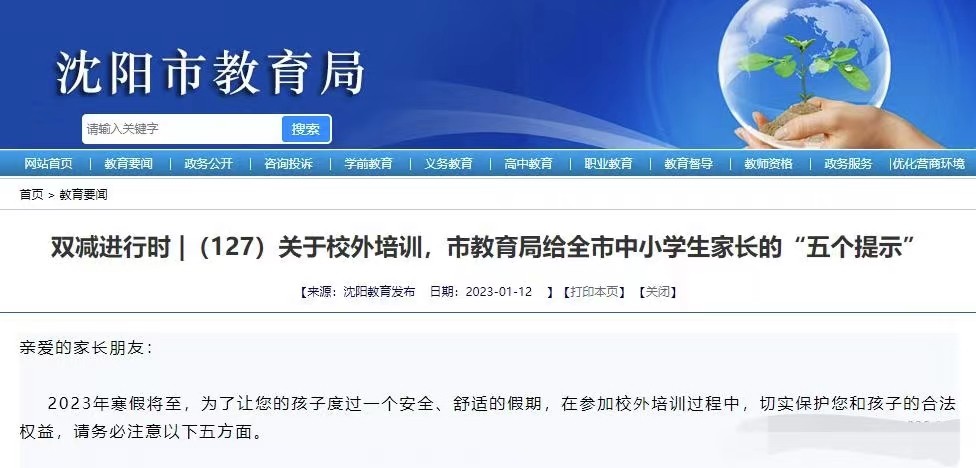沈陽市教育局最新通知:這個寒假學生能補放心新課,機構名單已發布