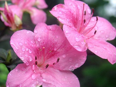 給杜鵑花澆水需要特別注意,土壤不干則不澆水,一旦澆水就要澆透徹,這是基本的原則。澆水的時候最好用雨水,如果是自來水則需要經過晾曬,消除其中的無用物質。杜鵑花根系比較弱,不耐旱又怕澇,所以要注意澆水量和澆水次數。夏季植株生長速度快,消耗的水分很多,每天都需要澆水。中午最好不澆水,因為根部受到涼水刺激可能會使植株受到傷害。