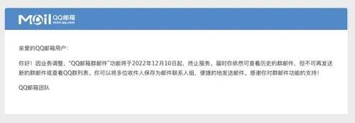 11月17日,QQ郵箱發布QQ郵箱群郵件功能下線公告。