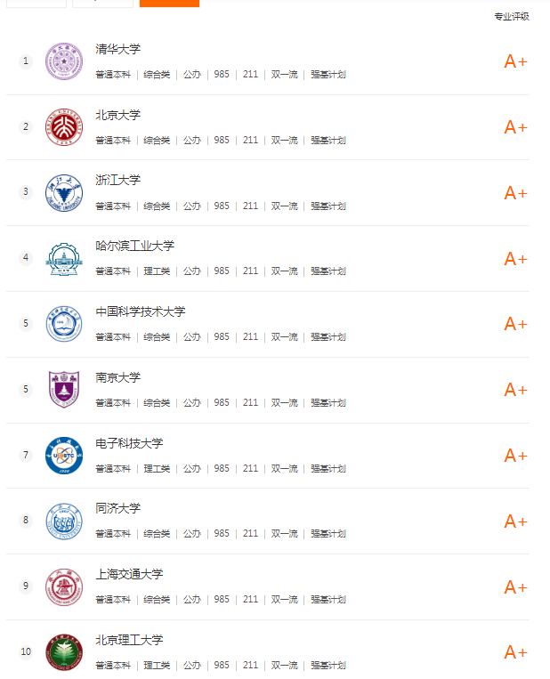目前,我國大多數院校有開設“計算機科學與技術“專業,其中以北京大學、清華大學、浙江大學、國防科技大學、中國科學院大學、北京航空航天大學、哈爾濱工業大學、上海交通大學、中國科技大學、北京郵電大學、中山大學、華南理工大學等院校的學科評估等級最高。而其他普通的一本、二本甚至大專院校,很多都會開設這個專業。因為開設該專業的相關院校太多,教學質量參差不齊,每年計算機相關專業的畢業生相當之多,所以用人單位在招聘時自然就會擇優錄取,更加看重學生的院校背景與學科實力。