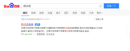 1.首先我們百度搜索防沉迷,然后打開一個有官網標志的網站