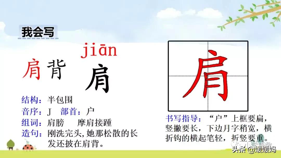 肩:肩膀 聳肩 披肩 肩負 身肩重任
