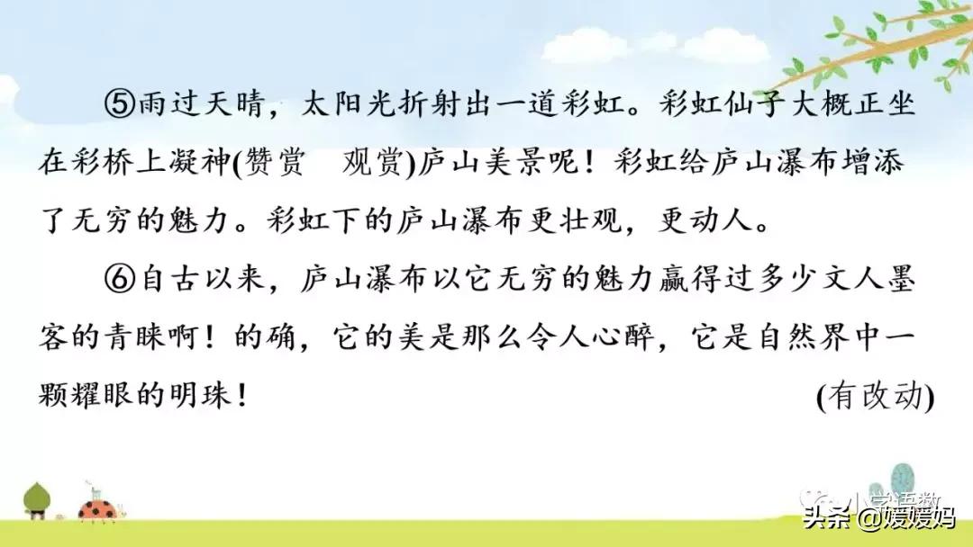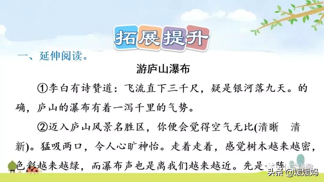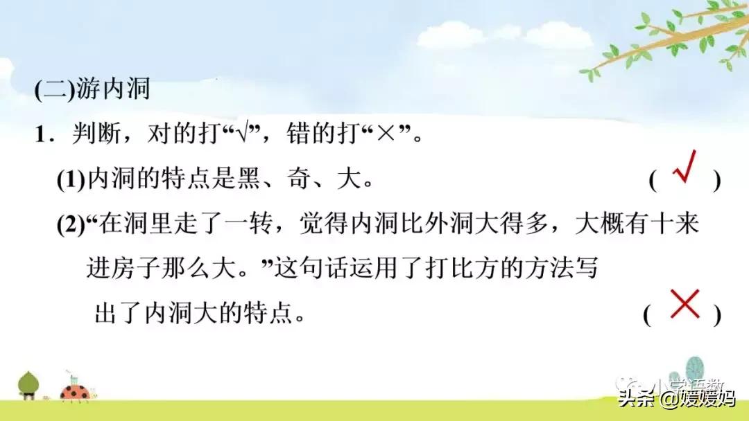 4.文中畫線的部分讓我們體會出:石鐘乳和石筍很值得觀賞,不需要比做什么,也很好看。