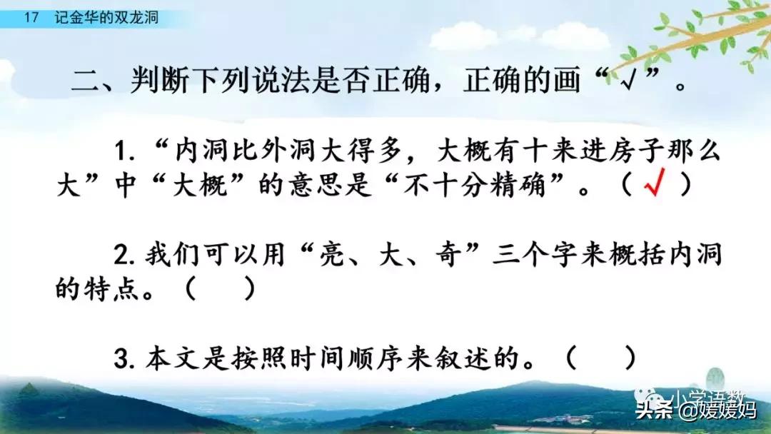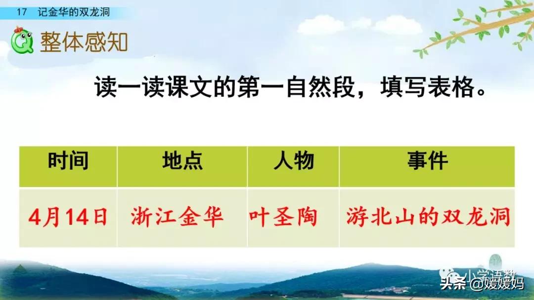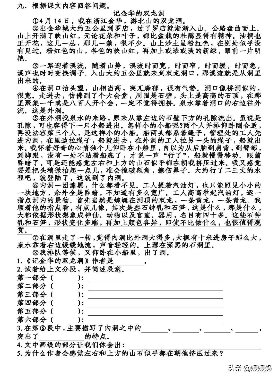 1.《記金華的雙龍洞》作者是葉圣陶。