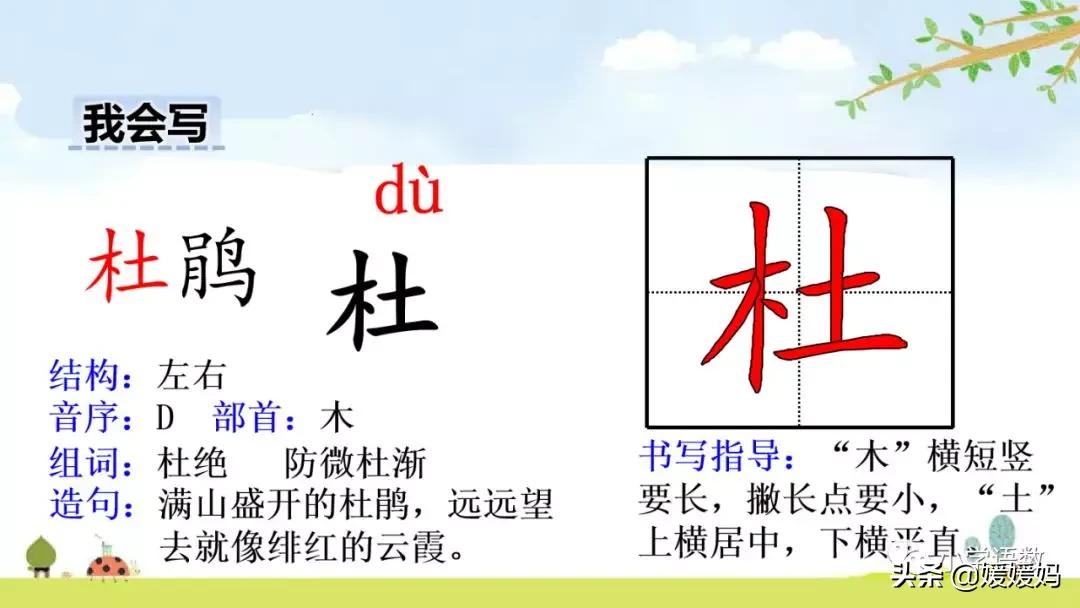 杜:杜鵑 杜絕 杜撰 防微杜漸