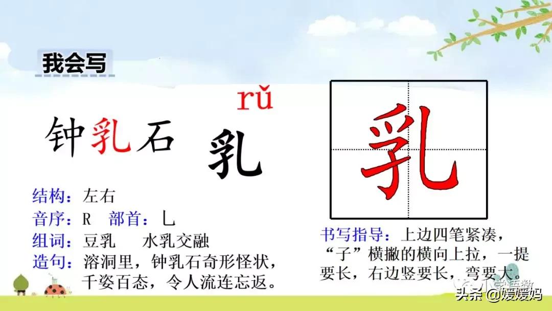 乳:豆乳 母乳 乳牙 乳燕 乳鴨 石鐘乳