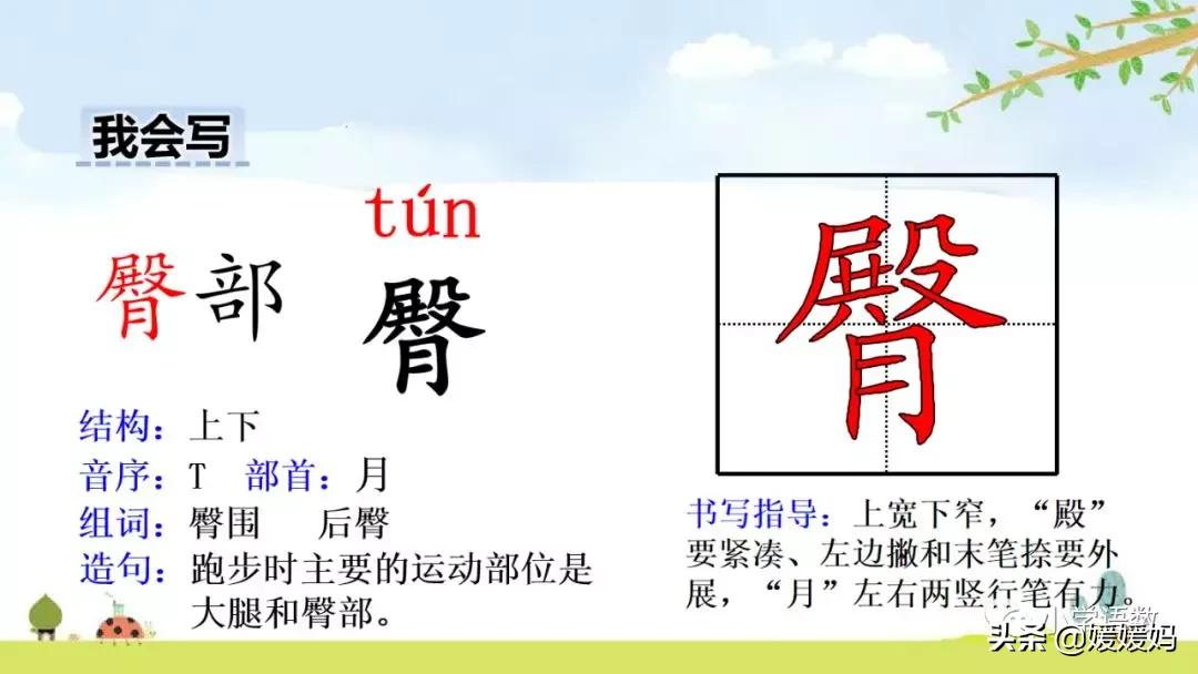 臀:臀部 臀鰭 臀杖 臀圍