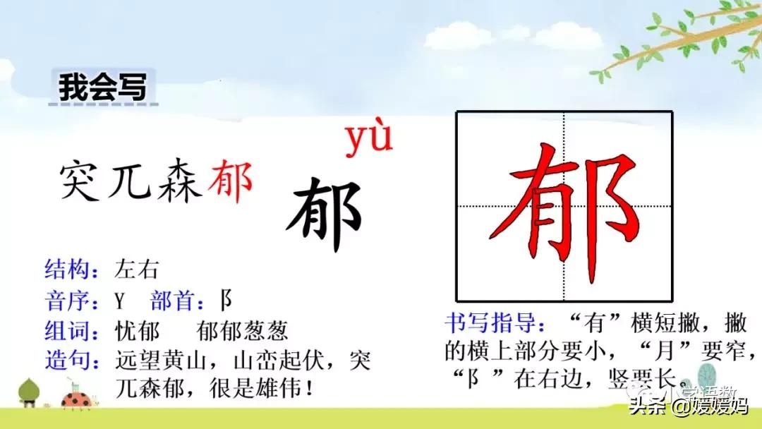 郁:森郁 蔥郁 憂郁 郁郁蔥蔥 郁郁不樂
