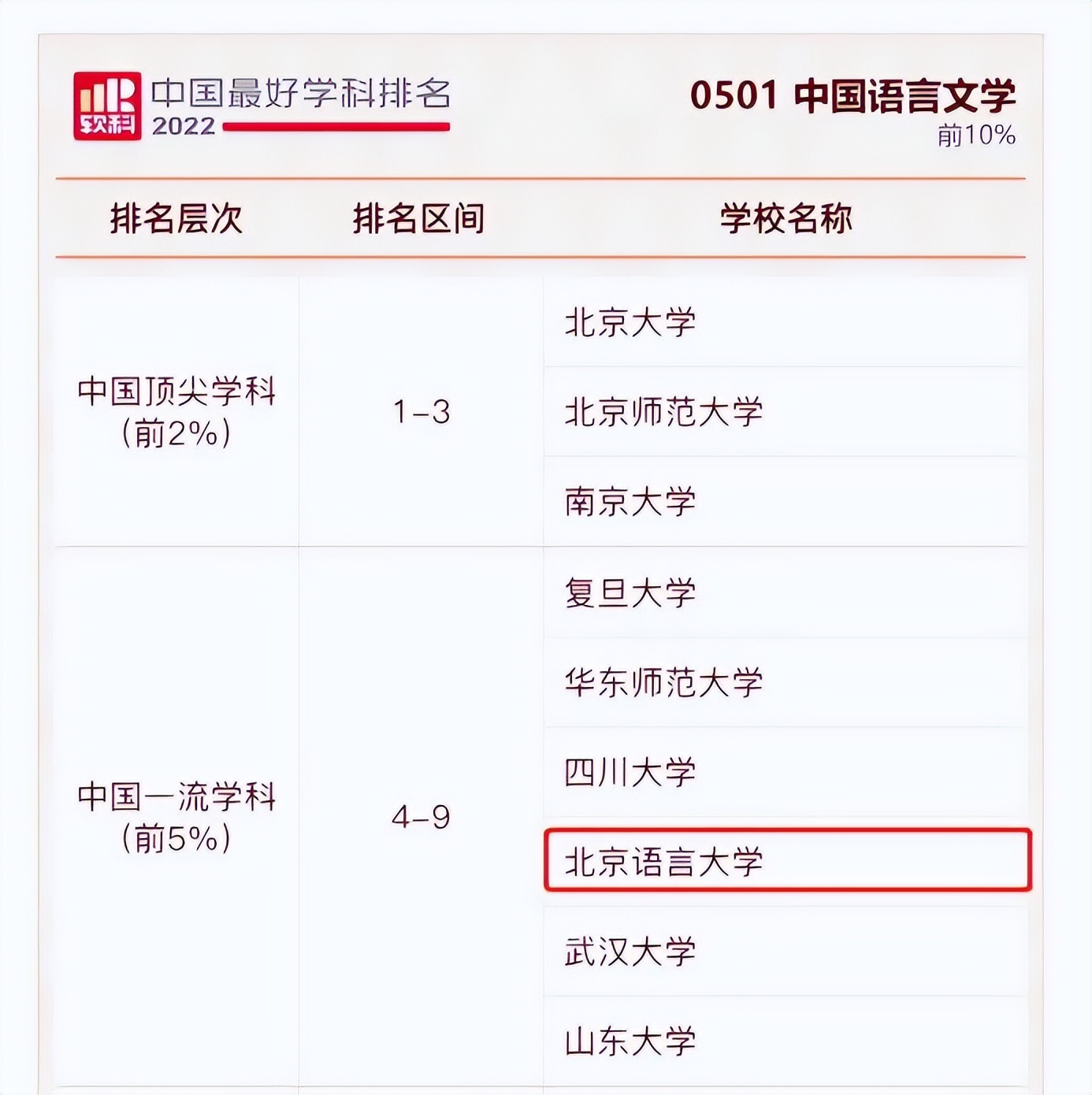 在2022軟科中國最好學科排名中,北京語言大學中國語言文學、外國語言文學2個學科上榜。其中,中國語言文學學科位列全國入選高校前5%,排名第7位,屬于中國一流學科。