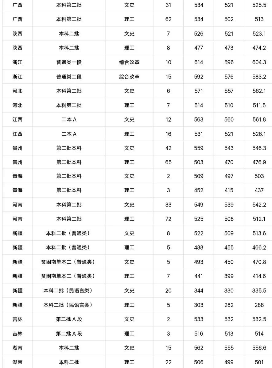 本科二批文史類錄取最低分為533,位次為14404,理工類錄取最低分為484,位次為65332,基本與2018年持平。