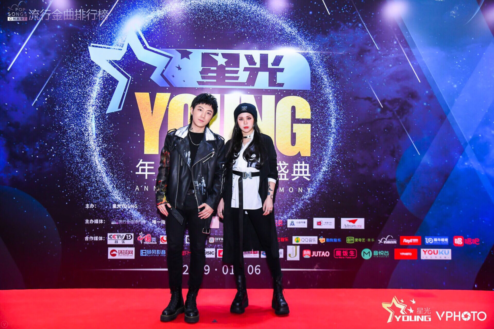 昨日,Excuse Me打擾一下樂團主唱陳圣侖、米時可受邀出席“星光YOUNG 2018年度公益頒獎盛典”并榮獲“年度最具人氣搖滾樂團”殊榮,陳圣侖、米時可二人以黑白色系搖滾設計搭配馬丁靴默契亮相,時尚潮范十足,吸睛滿滿。
