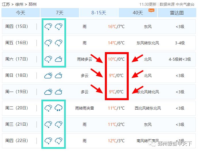 下周末邳州氣溫或將跌至0℃!