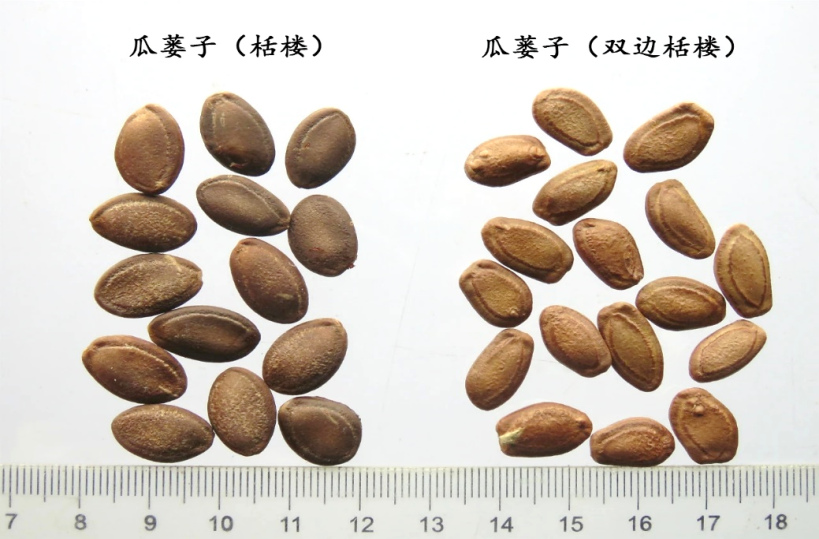 《中國藥典》記載瓜蔞植物來源為葫蘆科植物栝樓Trichosantheskirilowii Maxim. 或雙邊栝樓Trichosan-thesrosthornii Harms 的干燥成熟果實。并同時收載了二者的干燥成熟果皮作為瓜蔞皮,干燥成熟種子作為瓜蔞子,根作為天花粉藥用。