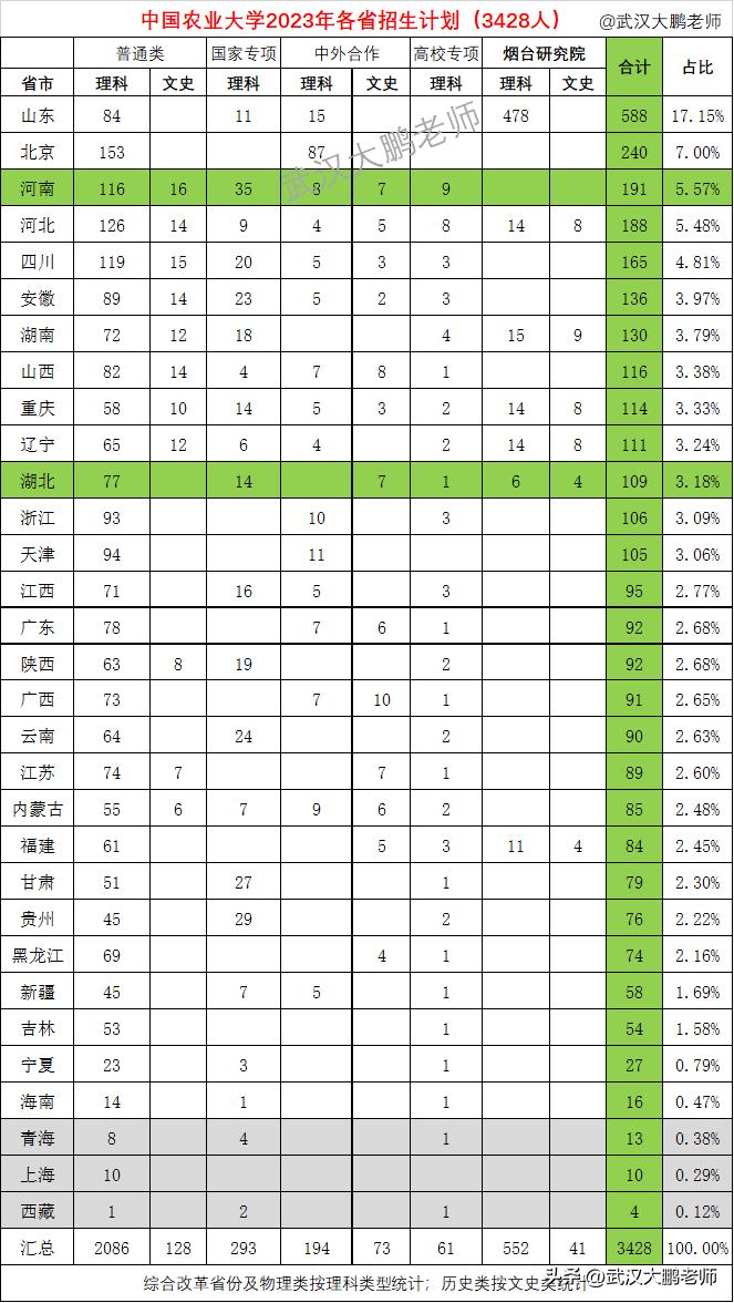 中國農業大學2023年招生計劃公布,共招本科新生3428人,山東588人、占比17.15%,北京240人、河南191人位居前三。