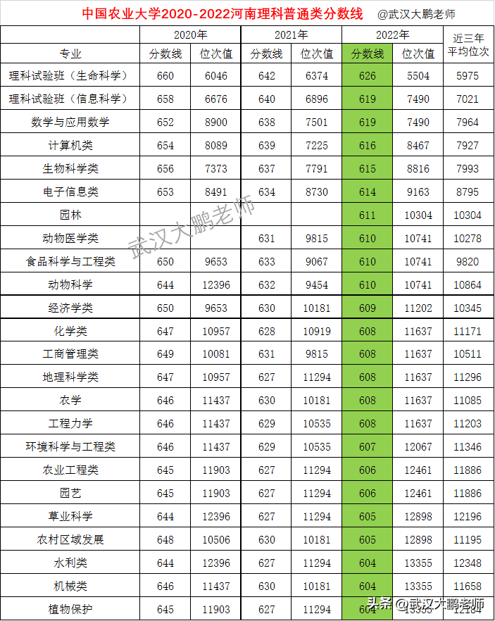 2022年中國農大在河南理科投檔線604分、位次13355位,下降兩千多位。近3年平均投檔線1.2萬位左右。