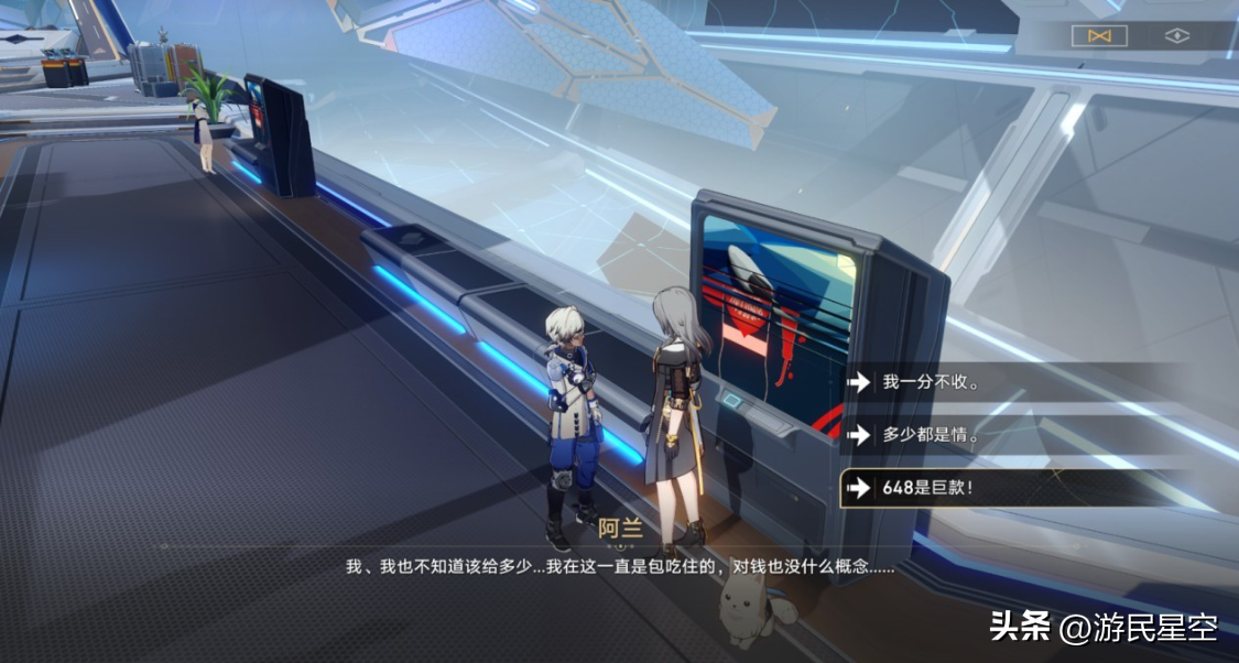 在許多二游里,玩家雖然扮演著不同身份,但很少直接參與到劇情中。而《星穹鐵道》的主線中,主角不僅全程參與冒險,而且在思考時會將心里話全盤托出(有語音),也會時不時夾雜一些對NPC或劇情情節的吐槽。同時,根據不同的分支選項,你可以將自己代入正義感與中二值爆棚的漫畫主角,也能夠化身騷話不斷的“人間之屑”。