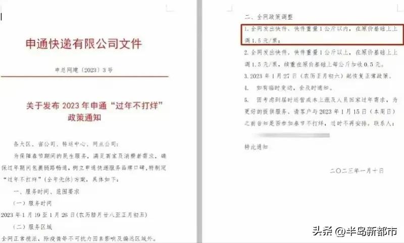 快遞進入春節模式運營成本上漲,申通、圓通、順豐上調收費。