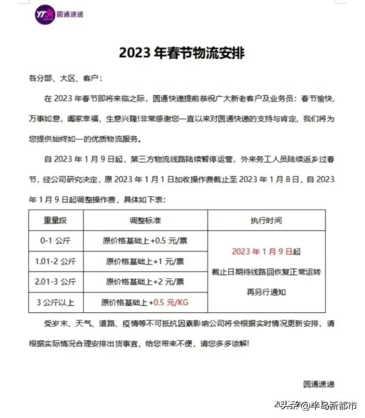 隨著春節將至,各大快遞平臺都表示“春節不打烊”,結果上調運費了。