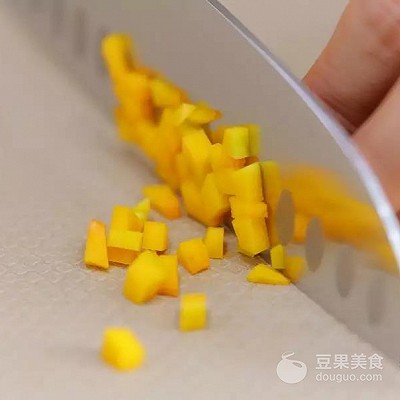 2、南瓜去皮,切成小丁。