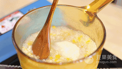 7、用勺子不斷攪拌,熬煮2分鐘,直到麥片煮得軟爛,盛入碗中。