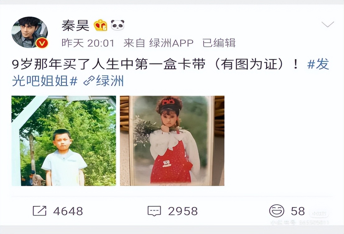 他在微博展示了自己童年時候買的伊能靜的唱片,表示自己從小就喜歡伊能靜,如今也算達成所愿。