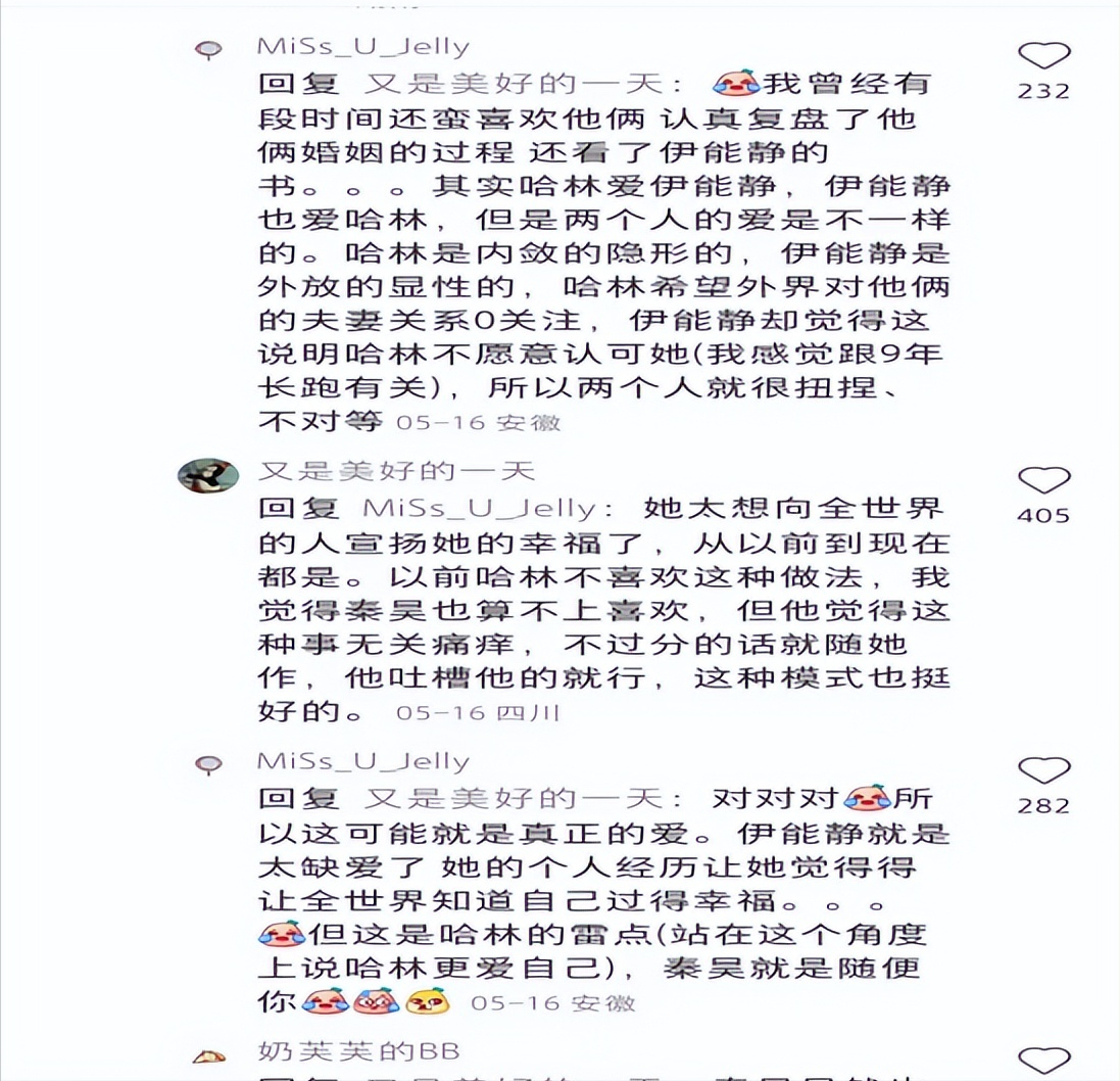 在這熱烈地討論中,也不免有部分網友會把伊能靜的兩段婚姻進行對比。