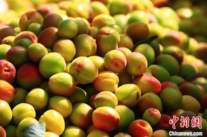 夏克爾·祖農在托克遜收購的杏子是一種叫“豐園紅”的品種,比當地其他大田種植的杏子還要早五六天左右。這種杏子肉質細密、果肉較硬、纖維中等、汁液多、仁甜、較抗碰壓、耐運輸,深受收購商和群眾喜愛。