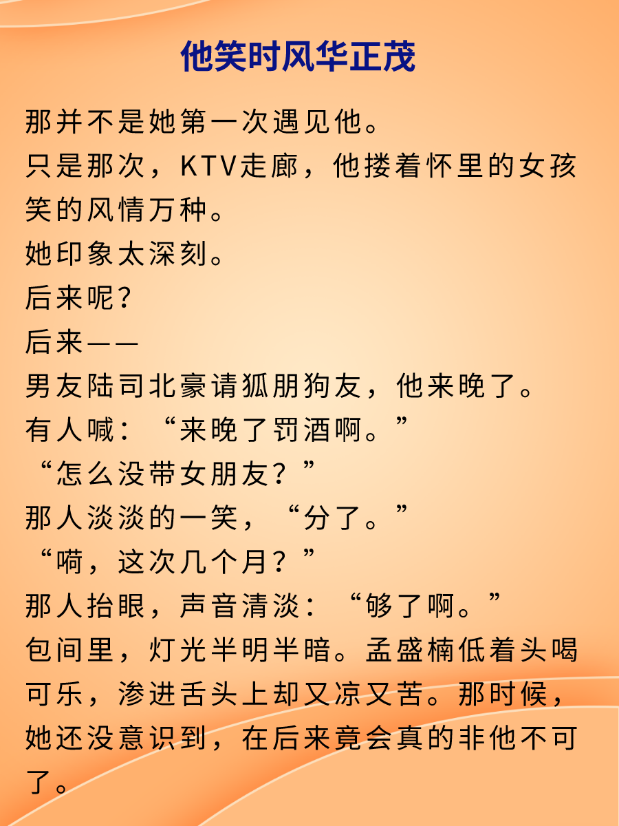 導讀舒遠的作品往往都是破鏡重圓,文風偏現實,屬于那種玻璃渣中夾著糖的故事。舒遠的作品口碑非常高,網友對其作品也并不陌生,或許真的應了那句話,好的作品,永遠不缺讀者。1、《他笑時風華正茂》這是一部青春暗戀到