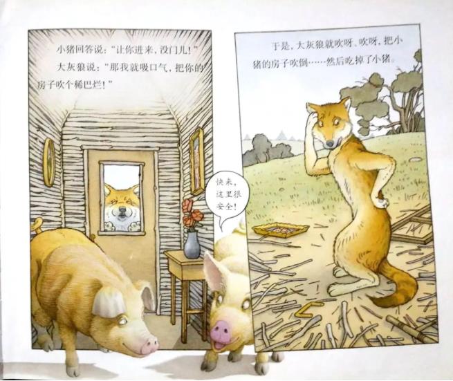 導讀三只小豬闖蕩天下的故事,第一只小豬用稻草建了一座房子。大灰狼說“那我就吸口氣,把你的房子吹得稀巴爛!”于是,把小豬的房子吹倒,把小豬吃掉了。第二只小豬用樹枝蓋了一座房子。那只大灰狼跟了過來。大灰狼說