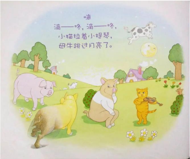 他們見到了狗、貓拉小提琴,牛跳過月亮了。