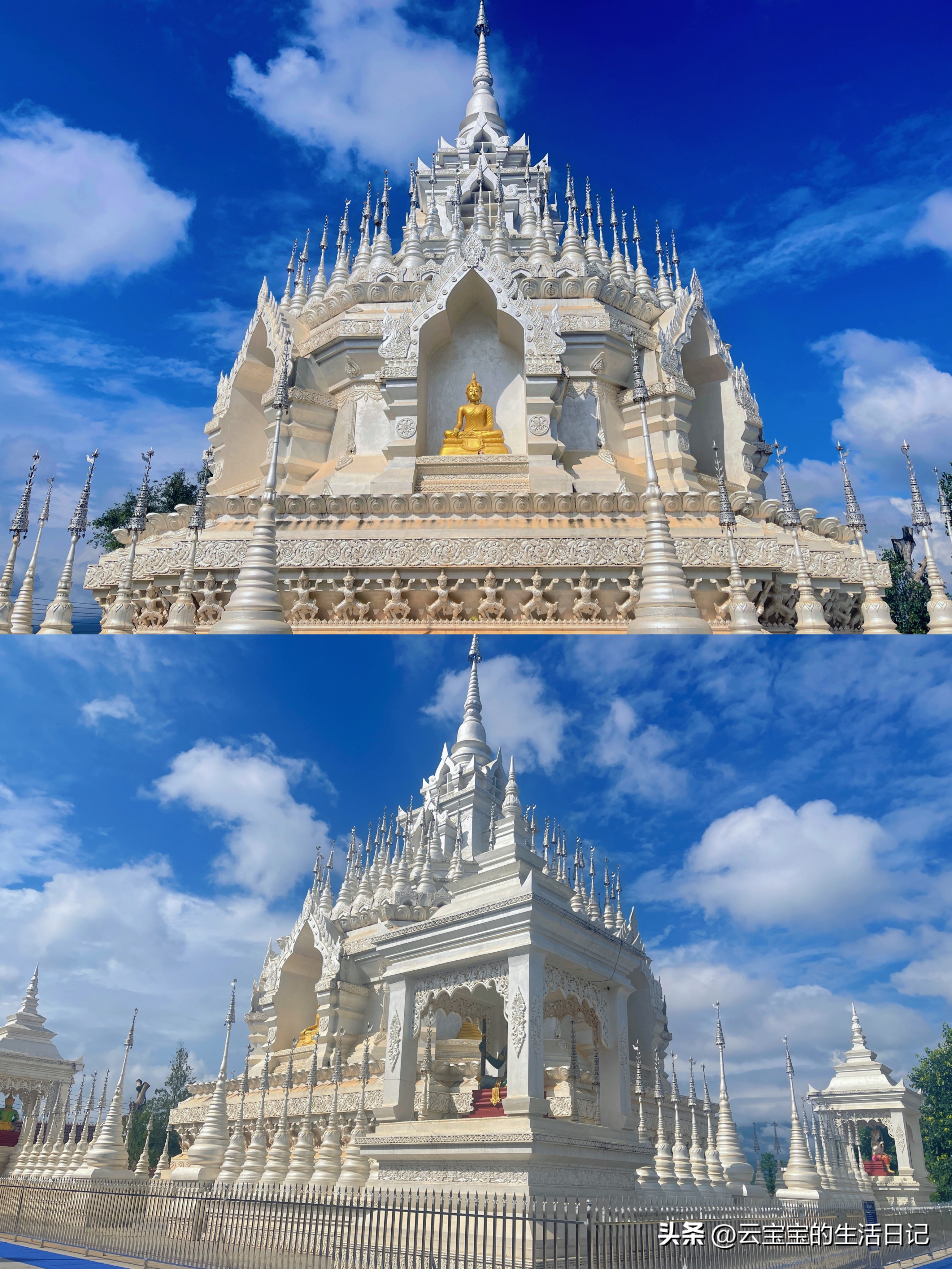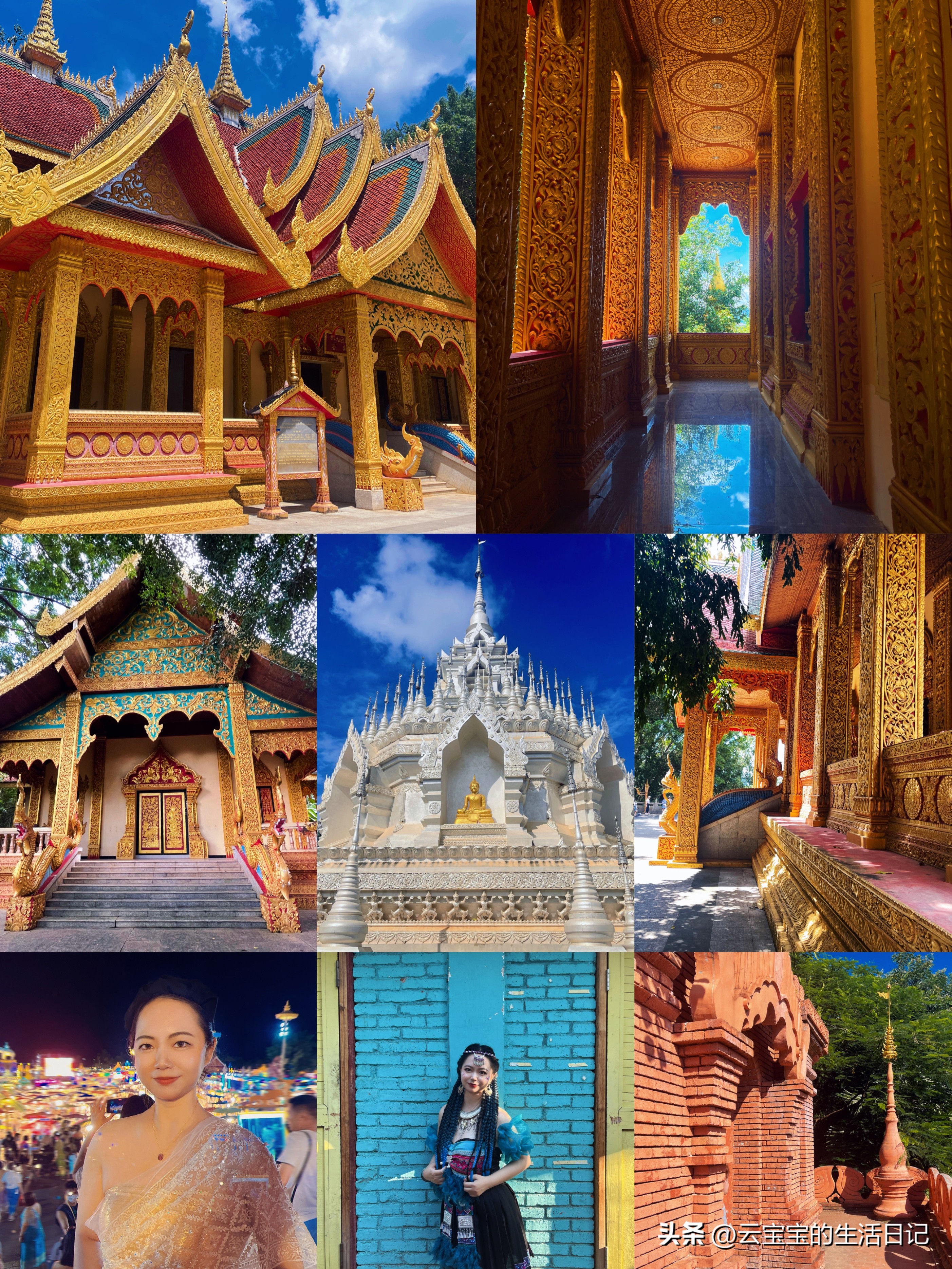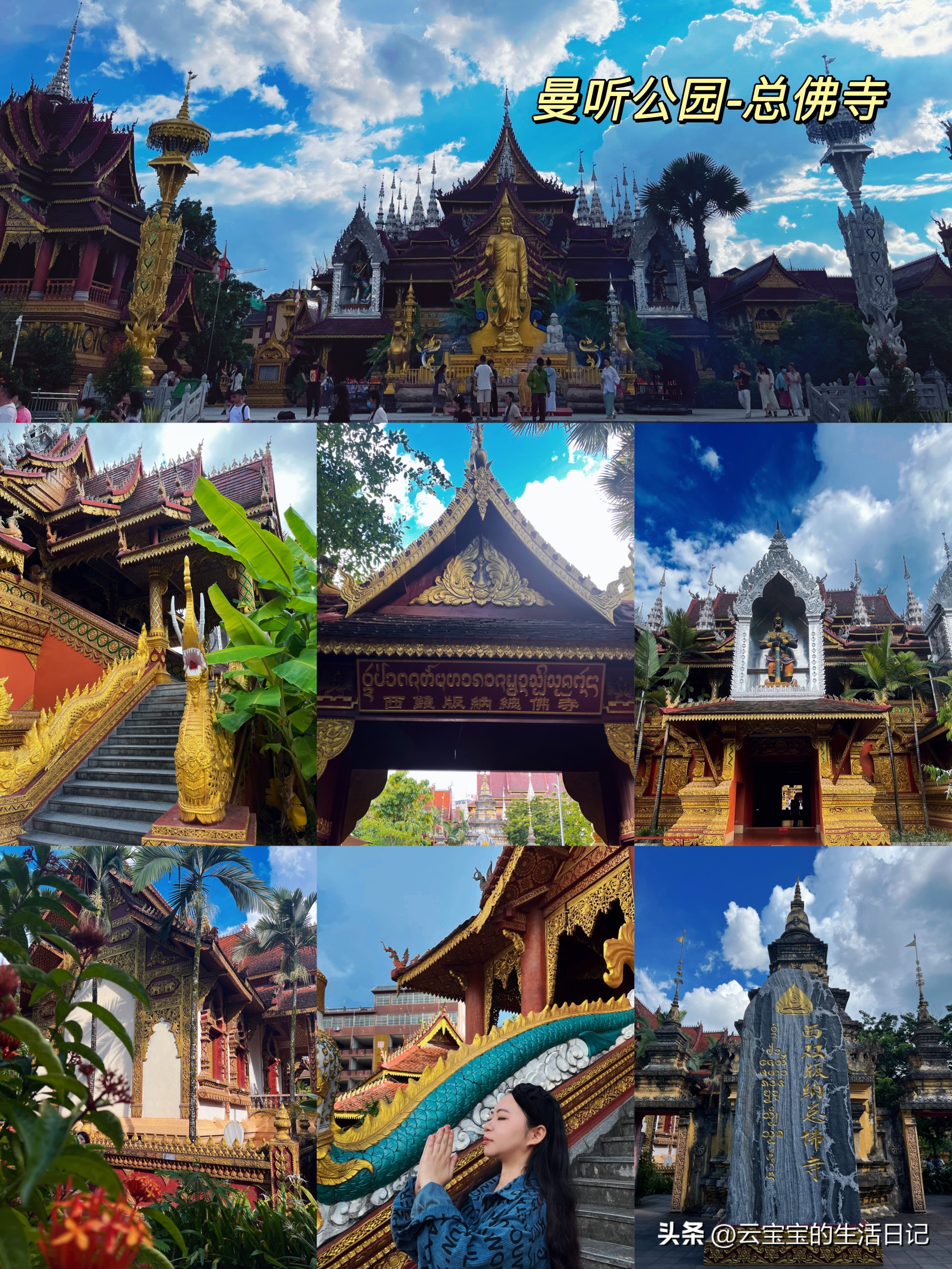 第三天【勐泐文化旅游區-大佛寺】這里每走一步都是拍照點,全金色泰式建筑,一定要穿傣佛很出片,基本上拍照點都在外面,如果不進去拜可以不穿外套。這里有孔雀放飛表演還有潑水節,參加潑水就多帶一套衣服。