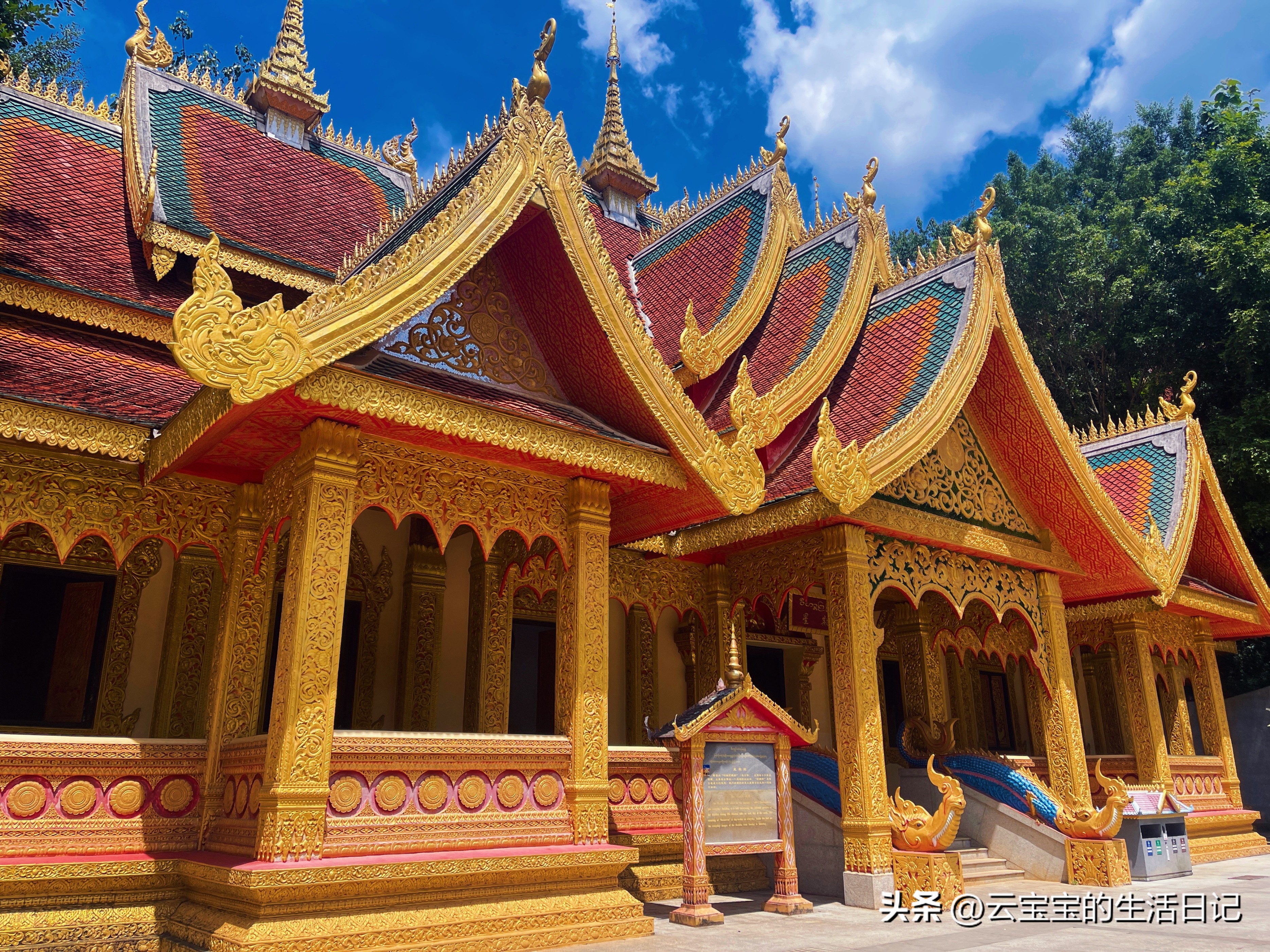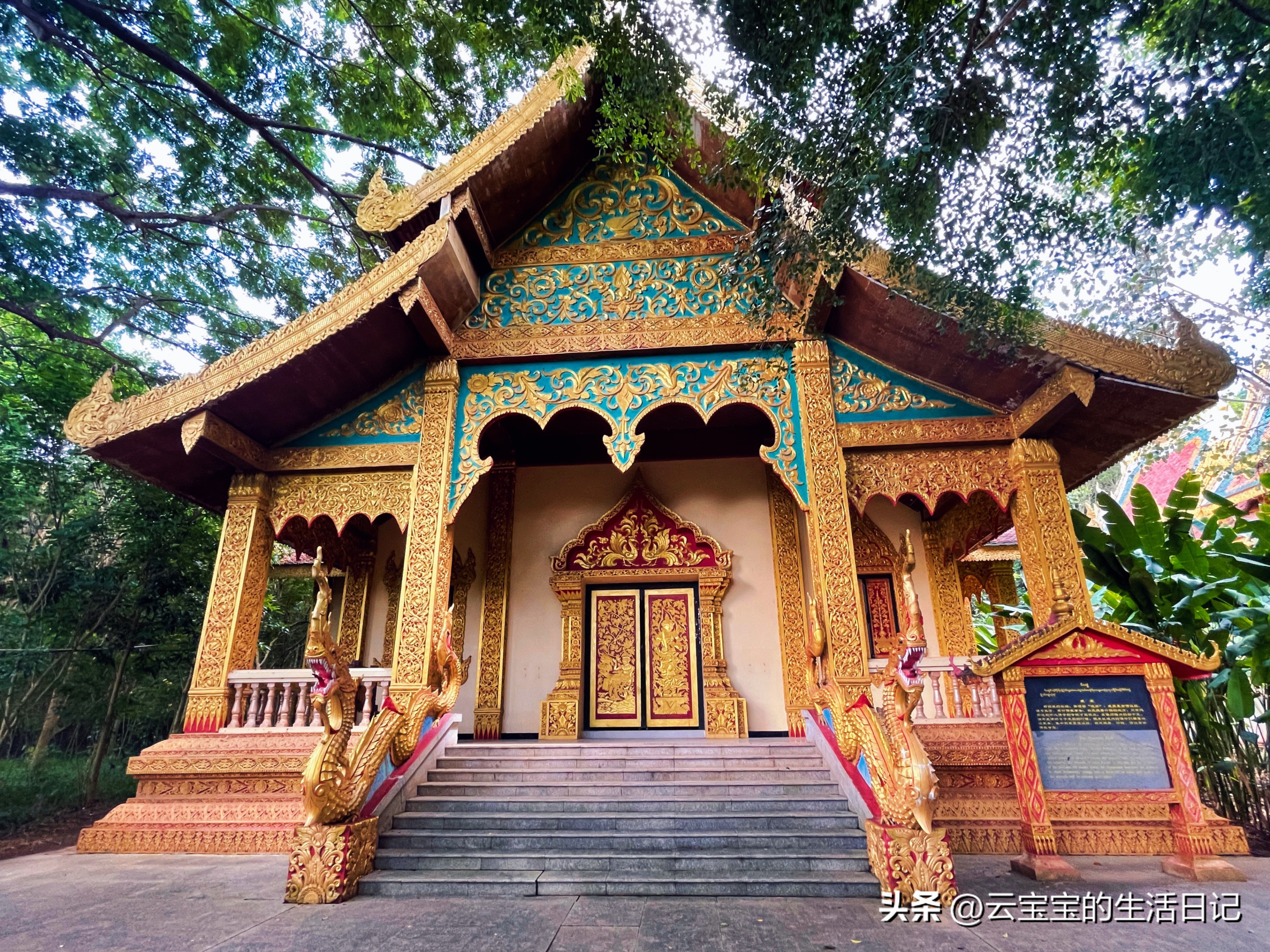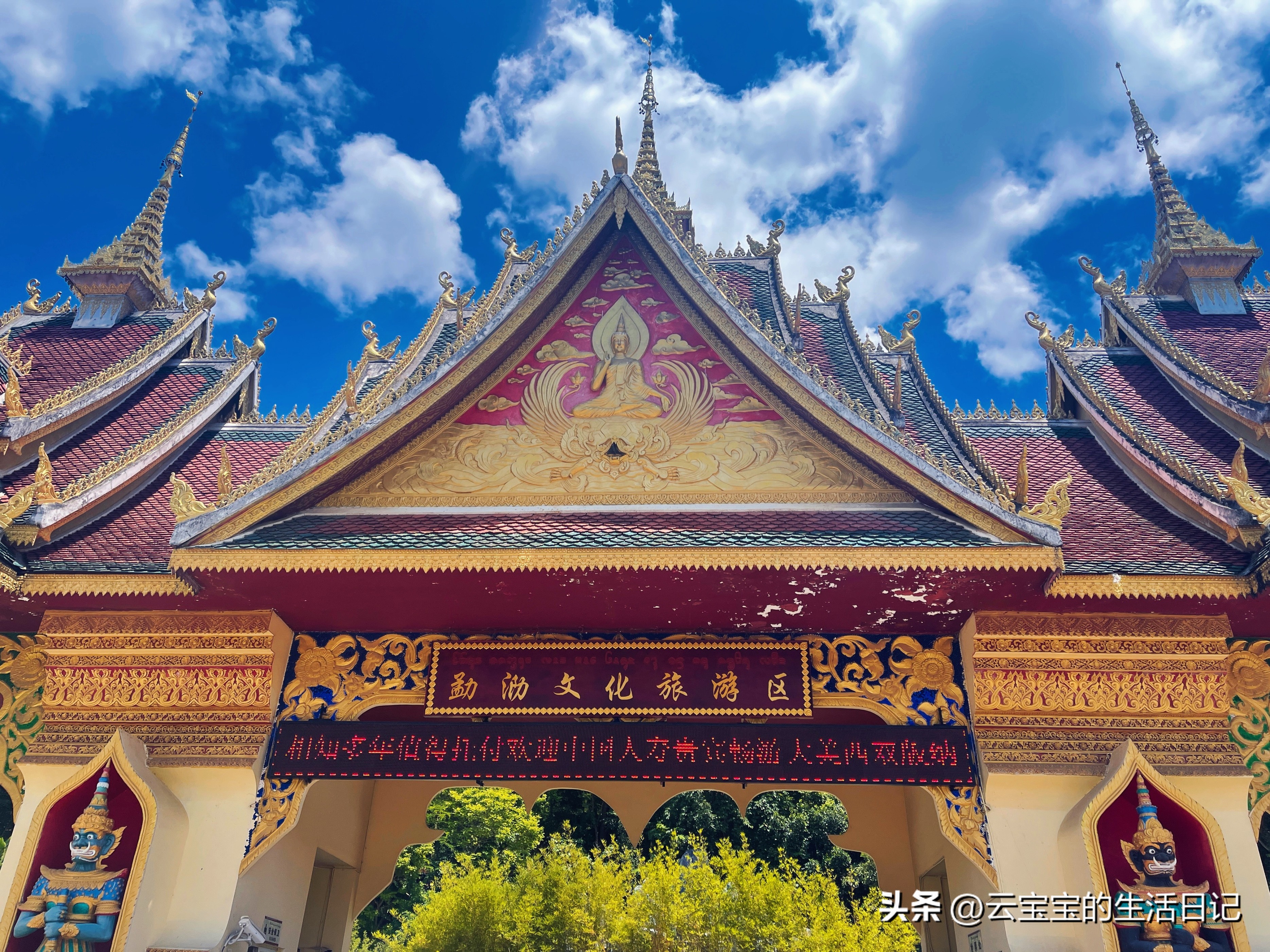 第三天【勐泐文化旅游區-大佛寺】這里每走一步都是拍照點,全金色泰式建筑,一定要穿傣佛很出片,基本上拍照點都在外面,如果不進去拜可以不穿外套。這里有孔雀放飛表演還有潑水節,參加潑水就多帶一套衣服。