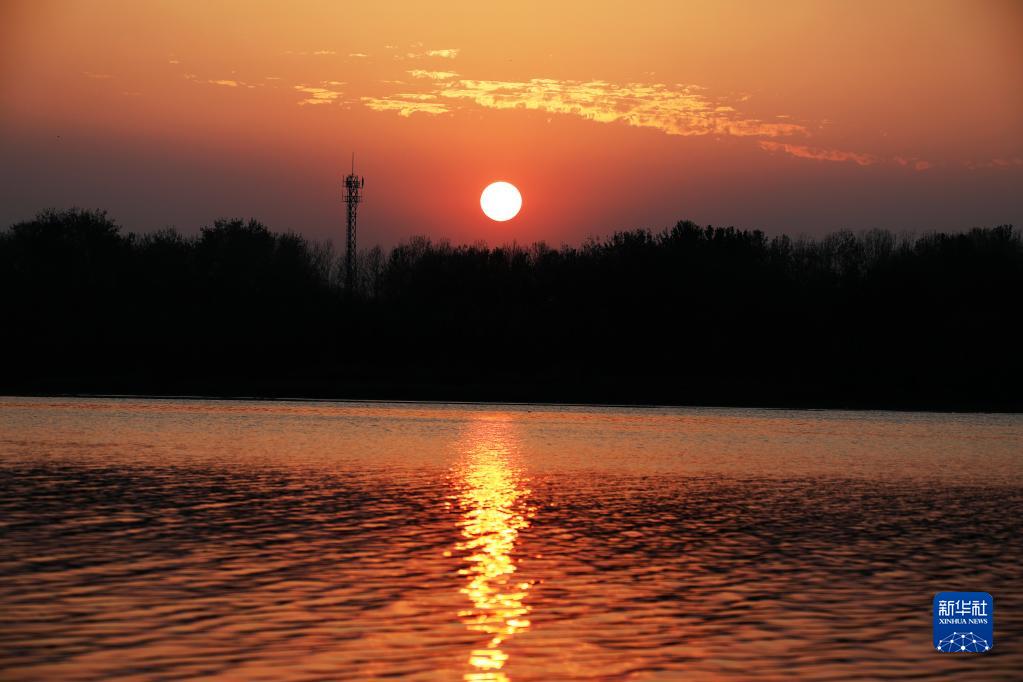 這是9月17日在山東省臨沂市郯城縣沂河畔拍攝的落日。新華社發