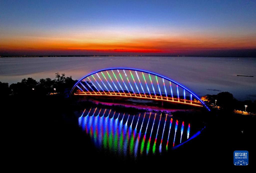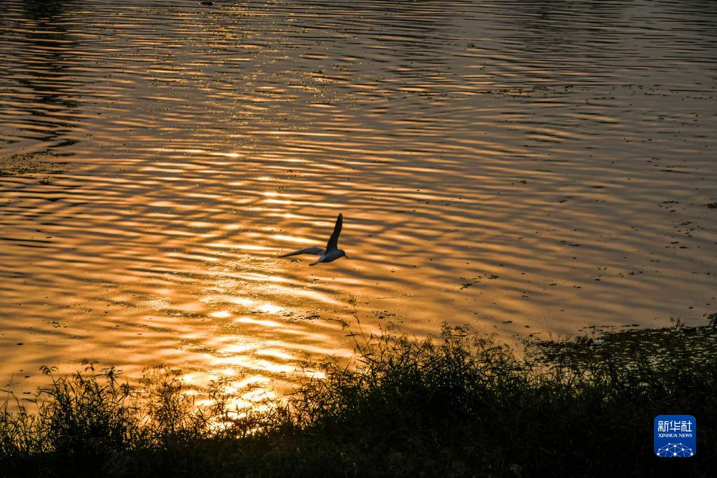 導讀金秋時節,天高云淡,秋水瀲滟。在落日余暉下,水面浮光躍金,鷗鳥飛舞,充滿詩情畫意。這是9月26日在江蘇省淮安市拍攝的夕陽下的洪澤湖和燈塔。新華社發10月10日傍晚,水鳥在黃河下游山東高青