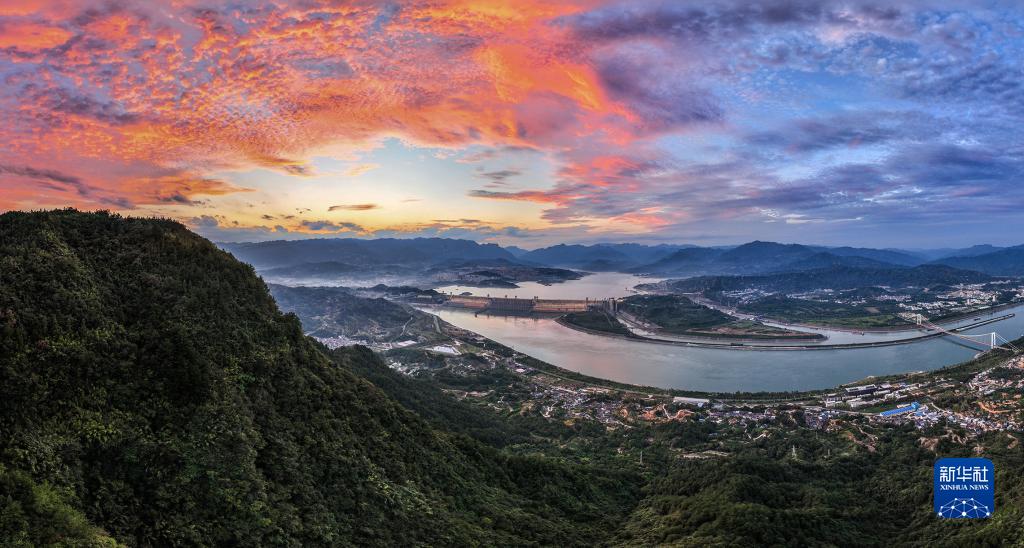 這是9月29日在湖北省宜昌市拍攝的長江三峽水利樞紐工程(無人機全景照片)。新華社發