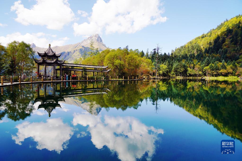 這是9月28日在甘肅省宕昌縣官鵝溝景區拍攝的秋景。新華社發