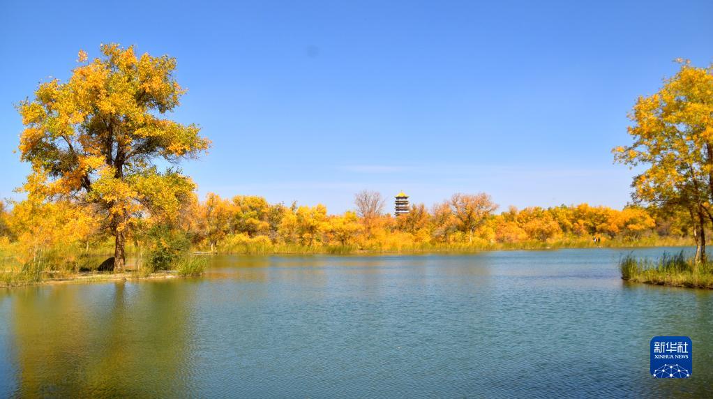 這是10月7日在甘肅省金塔縣拍攝的秋日胡楊林。新華社發