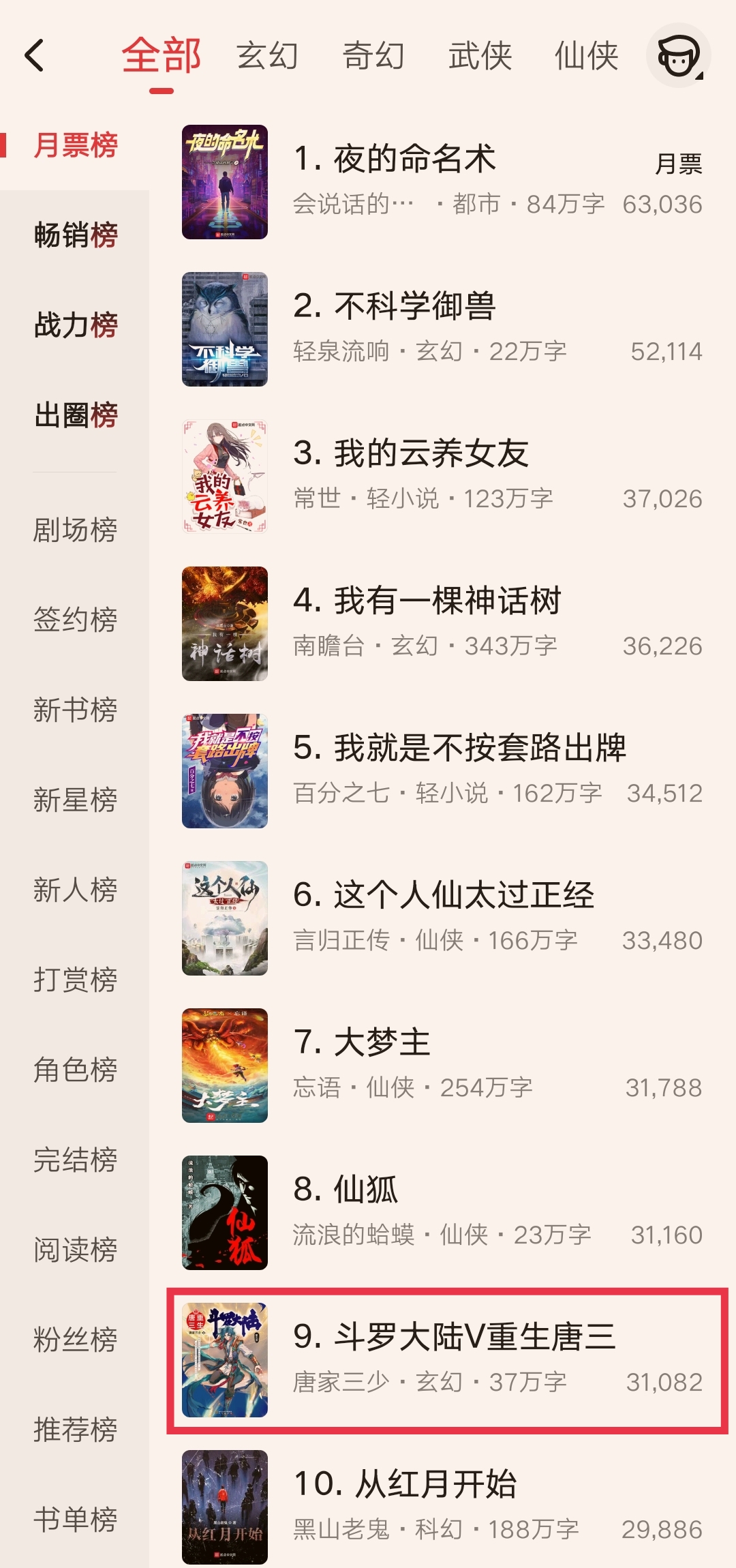 不過這次能上起點月票榜前十,也確實很詭異,畢竟他的主戰場已經不在起點了。上個月的新書上架月,他都沒有想著爭榜,最后排名在262名,可見在起點的熱度之低。