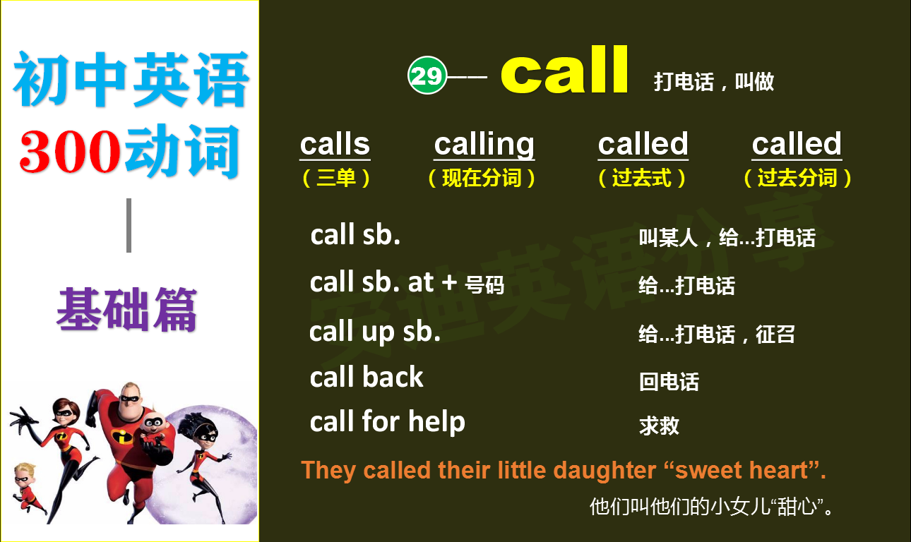 初中英語300動詞第26講,今天分享 動詞 —— call