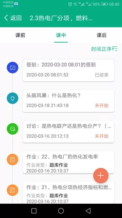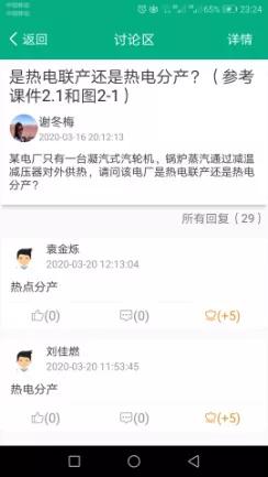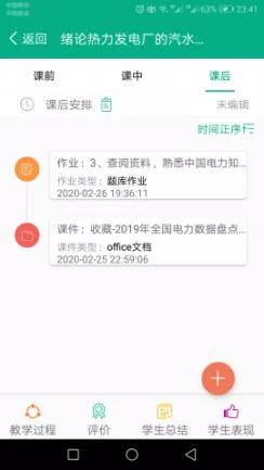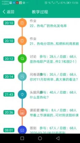 課后主要是完成課堂沒有完成的作業,比如畫圖題,就要求課下畫圖拍照上傳(第三周共2次),對課堂講解的發電廠三大熱經濟指標,是學習重點,為了讓學生掌握和后續計算題方便使用,課下要求學生寫下來公式并拍照上傳(第三周共2次)。