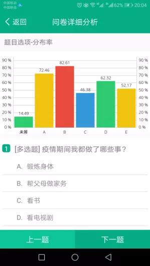 通過作業,老師也可以及時了解學生對知識掌握的程度,課堂上針對學生作業中反映出的突出問題和共性問題,及時給學生講解,把難點消化。課中也通過問卷調查形式了解學生思想狀態,并及時引入課程思政。